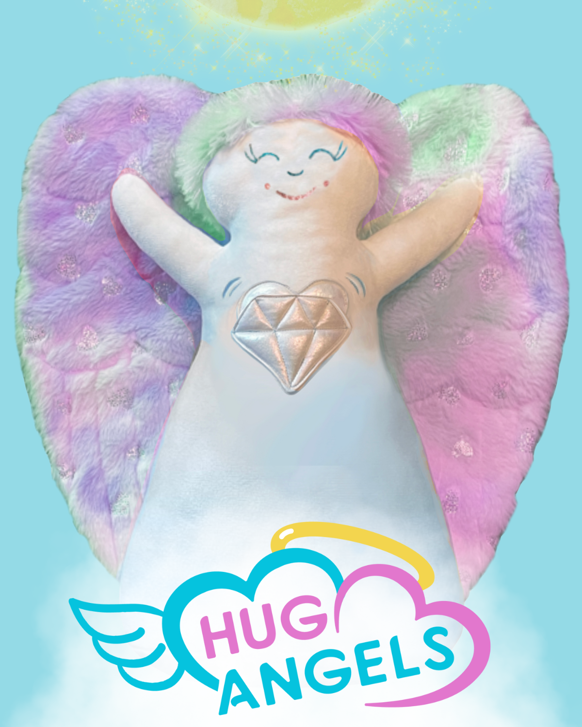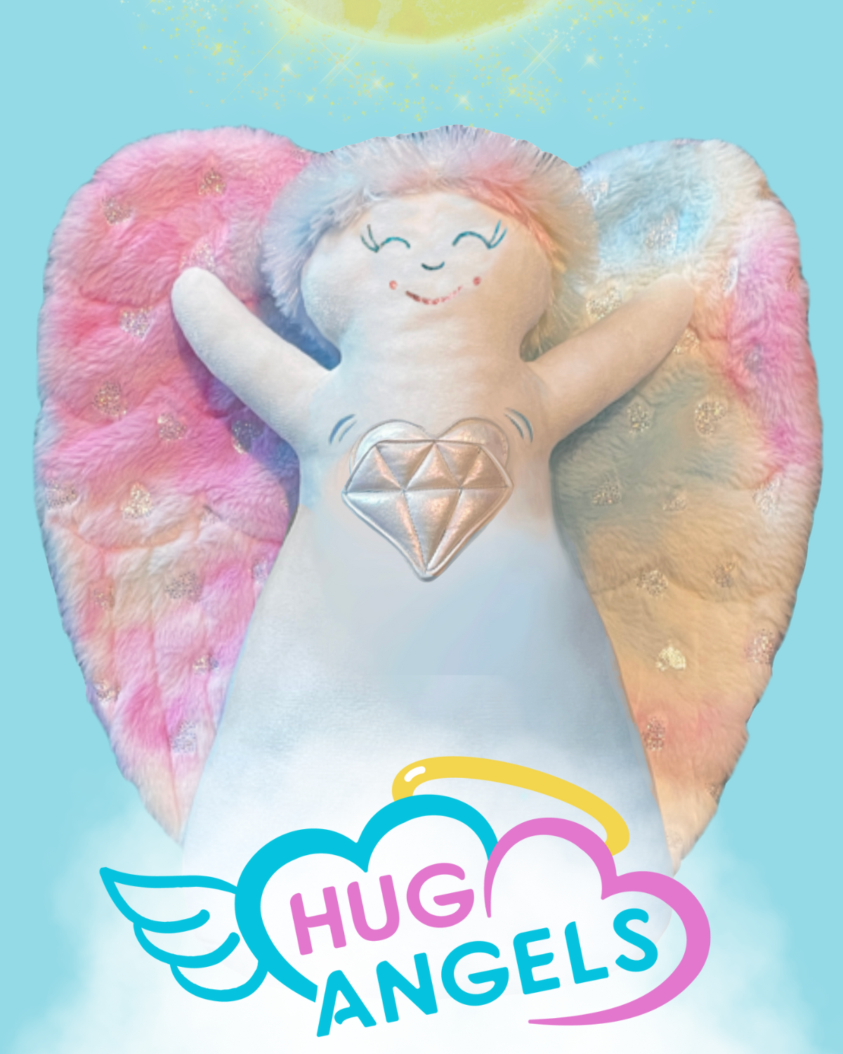 Un cómodo peluche diseñado para levantar el corazón de niños de todas las edades. ¡Completo con altavoz Bluetooth, aplicación "Angel Hugs" y curación con cristales en el interior!
